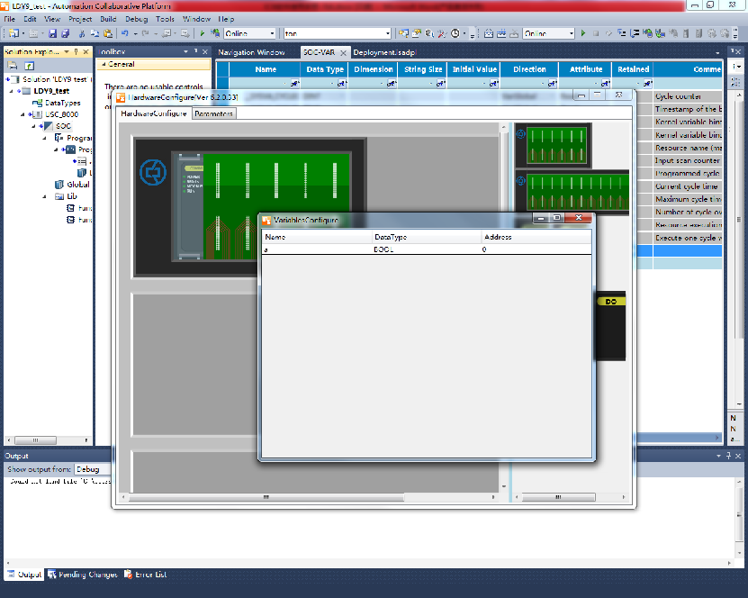 右键点击“SOC”,选择“HardwareConfigure”,双击已配置完毕的COMM模块,弹出“VariablesConfigure”界面,界面如下所示